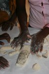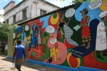 Nedre raden: Utbildningarna fokuserar på att utifrån människors egna erfarenheter av frågor som rör relationer och jämställdhet skapa en diskussion, inte minst fokuserad på att kvinnor och män tillsammans i blandade grupper ska prata om dessa frågor. Mittenbilden föreställer en övning med deg (syftet uppenbart?) och sista bilden föreställer en mur som Monaso målade i Nampula för att informera allmänheten om en ny lag som skyddar hivpositiva mot diskriminering på arbetsmarknaden.