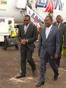 I efterhand: I dagens nummer av Faisca (lokaltidning i Lichinga) fanns en bild (se nedan) på premiärministern när han precis anlänt till Lichingas flygplats. I bakgrunden är det visst någon som förefaller vansinnigt koncentrerad på att gå ner för trappan, undrar vad jag tänkte på…?