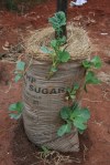 Inne på gården vid UCAs kontor har de inlett arbetet med ett ”minidemontrationsfält”. Rogério, som är rådgivare på UCA berättar: -Efter att vi besökt agroforestrycentret i Cuamba kände vi att ville göra någonting konkret – något som bidrar till att kunskaperna därifrån även kan spridas i norra Niassa. Därför bestämde vi oss för att öppna ett litet fält inne på gården vid kontoret.”