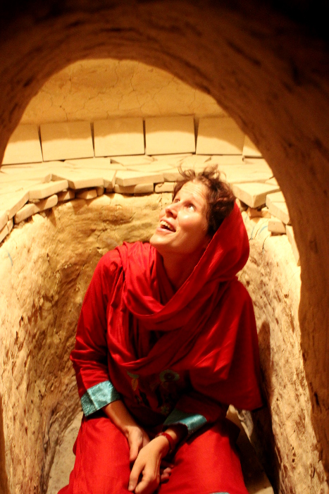 Lycklig besökare i kakelfabriken