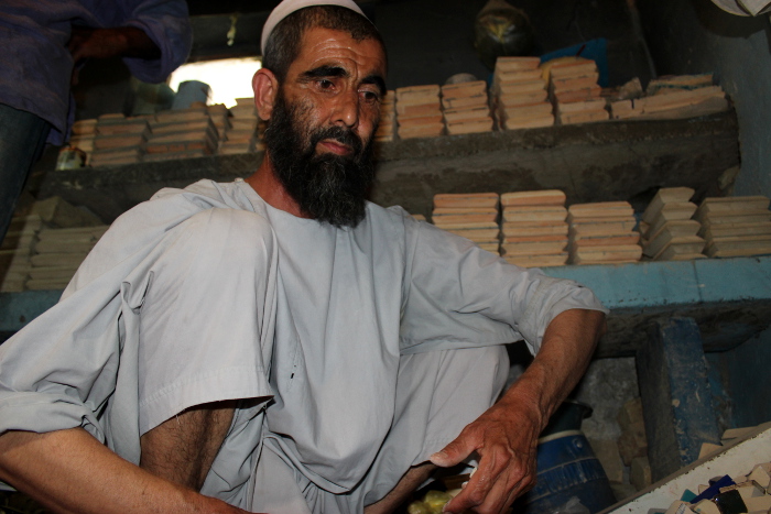 Lycklig besökare i kakelfabriken