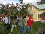 Idag bar det av till Hjo – en skarp kontrast till dagarna i Stockholm. Efter en första tur i staden var den livligaste diskussioner om äpplen. För vissa av besökarna var det första gången de såg äpplen på träd och de var alla överens om att det var ett skandalöst slöseri med alla äpplen som inte tas om hand.