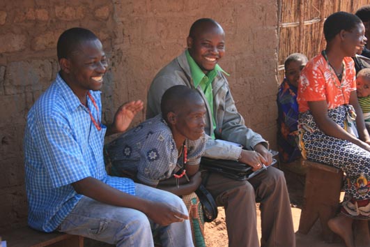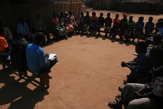 Efter att de visat hur det skulle gå till på fältet samlades vi tillsammans med medlemmarna från de tre organisationerna, som gått samman i en union. De berättade om sin erfarenhet med djuren och hur de planerat för framtiden, att djuren ska hjälpa till dels på de gemensamma fälten och dels på medlemmarnas individuella fält. Vi satt som i en fyrkant och de berättade att de är så här de sitter när de har studiecirklar.